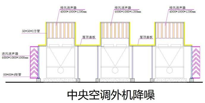 1、空調(diào)風機出口處安裝復合式消聲設(shè)備,消耗風機空氣動力性噪聲能量;安裝環(huán)境允許情況下也可在空調(diào)機外側(cè)安裝隔聲屏障,為周圍住宅營造聲影保護區(qū)域。