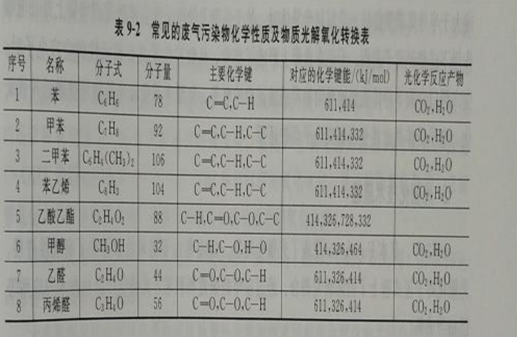 1、光解技術(shù)的原理光解是利用UV紫外光的能量使空氣中的分子變成游離氧,游離氧再與氧分子結(jié)合,生成氧化能力更強(qiáng)的臭氧。近而破壞VOCs中的有機(jī)或無機(jī)高分子化合物分子鏈,使之變成低分子化合物,如CO、HO等。由于UV紫外光的能量遠(yuǎn)遠(yuǎn)高于一般有機(jī)化合物的結(jié)合能,因此,采用紫外光照射有機(jī)物,可以將它們降解為小分子物質(zhì)。
