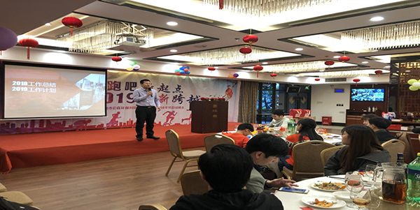 宏森環(huán)??偨?jīng)理吳楚任通過主題為"在風(fēng)口,讓我們和豬一起飛"的形象ppt,帶領(lǐng)大家一起回首宏森環(huán)保過去一年取得的成就和存在的不足,并對(duì)這些不足提出了針對(duì)性的改進(jìn)措施,最后還為2019年工作作了簡(jiǎn)短的安排。