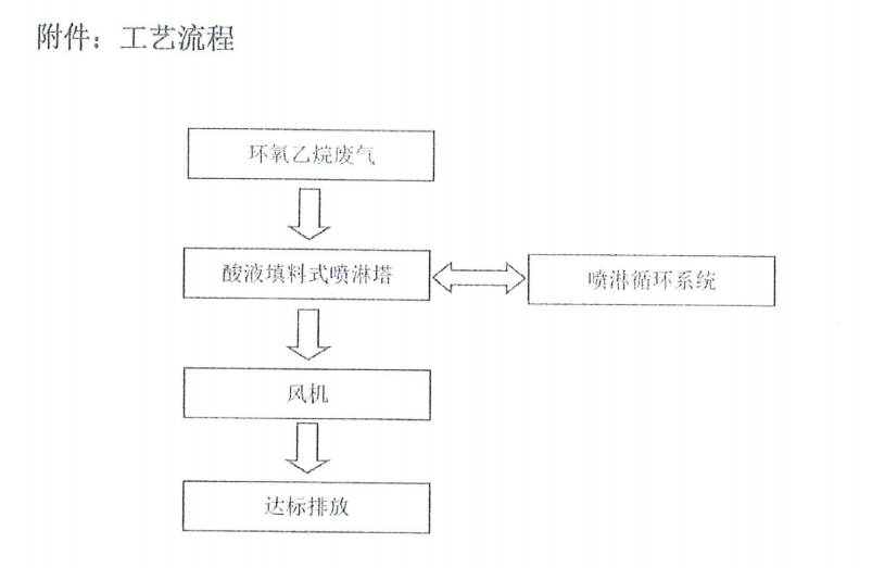 廢氣經(jīng)過噴淋塔,把灰塵和顆粒狀的給排除掉,以免堵塞設(shè)備造成損耗。然后其他的廢氣經(jīng)過催化的化學(xué)作用下,把環(huán)氧乙烷給消化掉。剩余的干凈廢氣再經(jīng)過風(fēng)機排放出去。